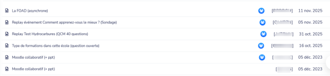 quiz de différents formats (créés sous Wooclap ou issus des activités Test de votre cours sous Moodle),