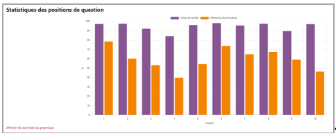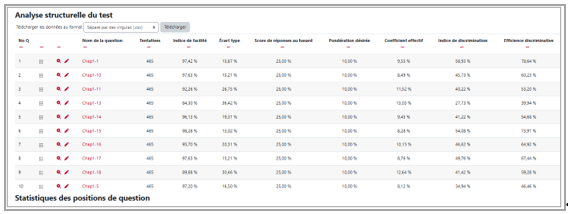 L'onglet Statistique affiche la liste des questions et des indicateurs édumétriques pour chaque question.